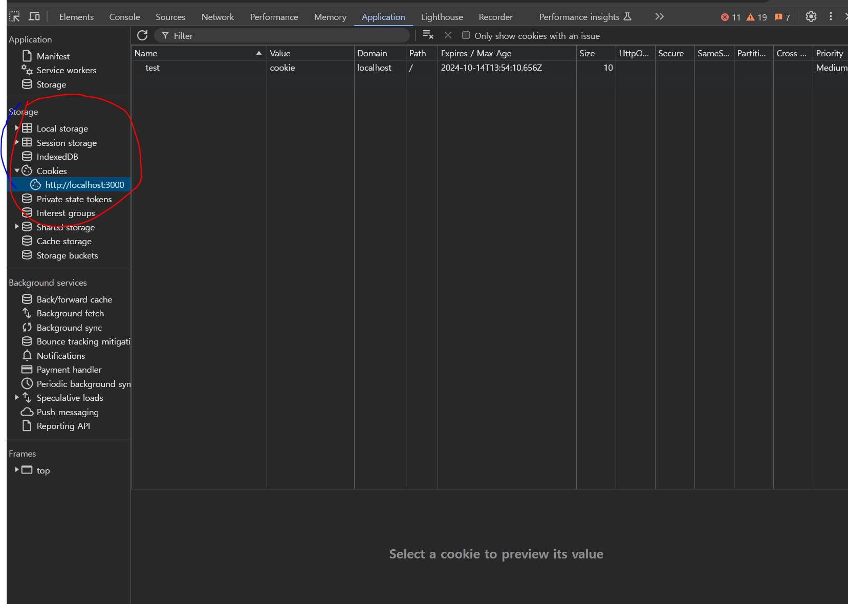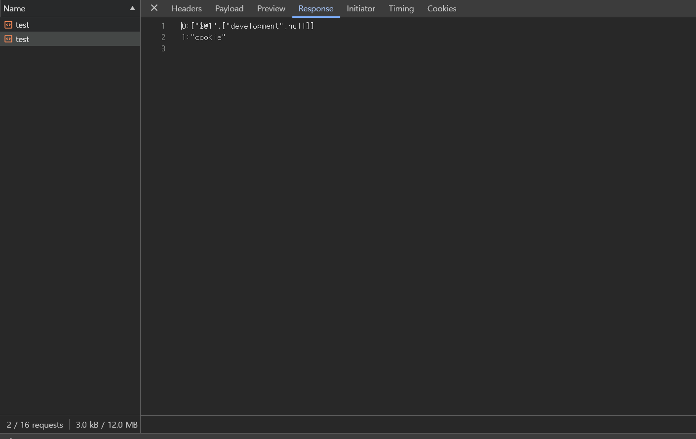 그 다음 get cookie를 하기 위해서 프런트 서버에 또 요청을 하는 것을 확인 할 수 있다. 응답으로 쿠키 값을 주고 있다.