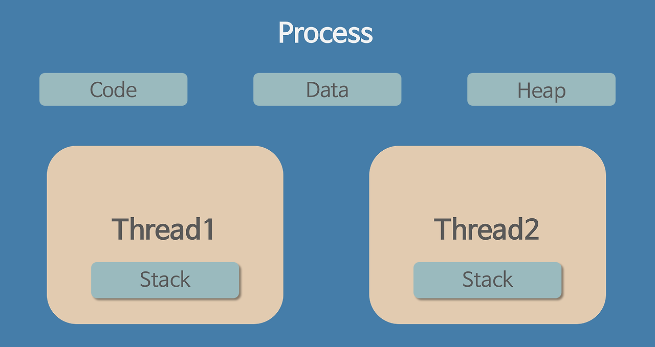 프로세스 안에는 여러 쓰레드들이 있고, 쓰레드들은 실행을 위한 프로세스 내 주소 공간이나 메모리 공간(Heap)을 공유 받는다.