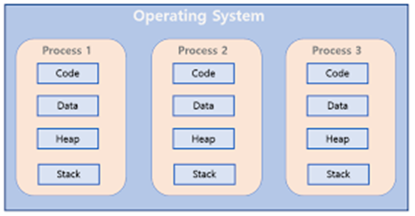 운영체제로부터 자원을 할당 받는 작업의 단위로, 프로세스는 실행 중인 프로그램을 의미한다.