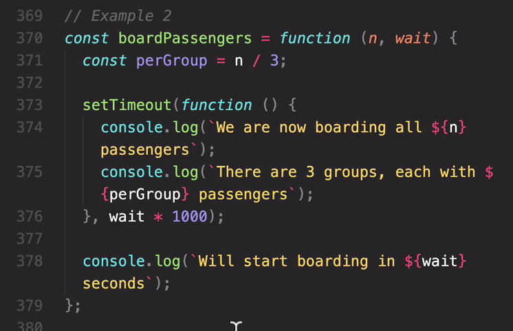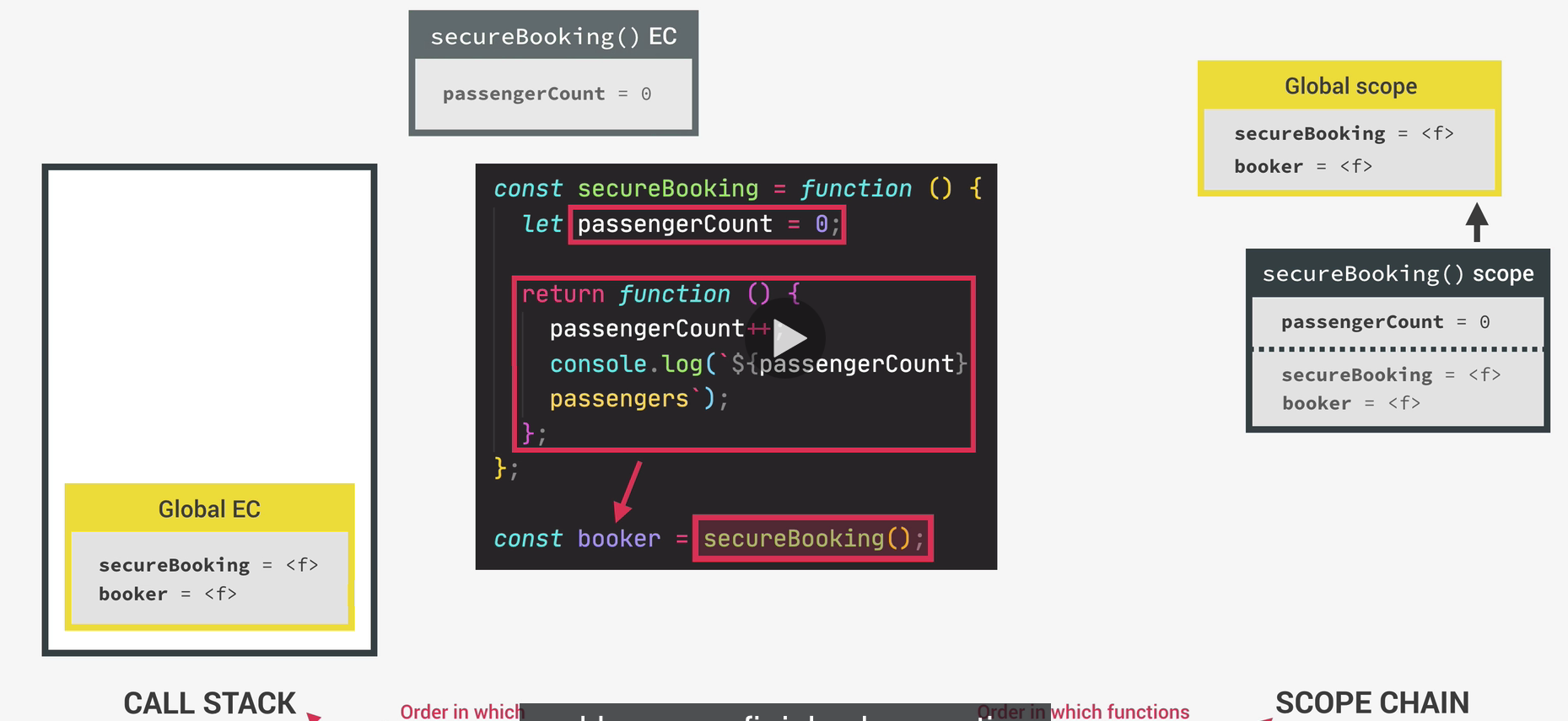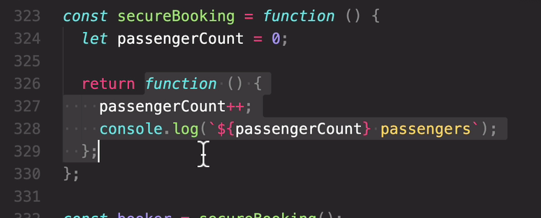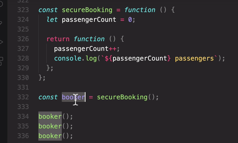 So what matters the most here is that the Booker function has access to the passengerCount variable because it's basically defined in the scope