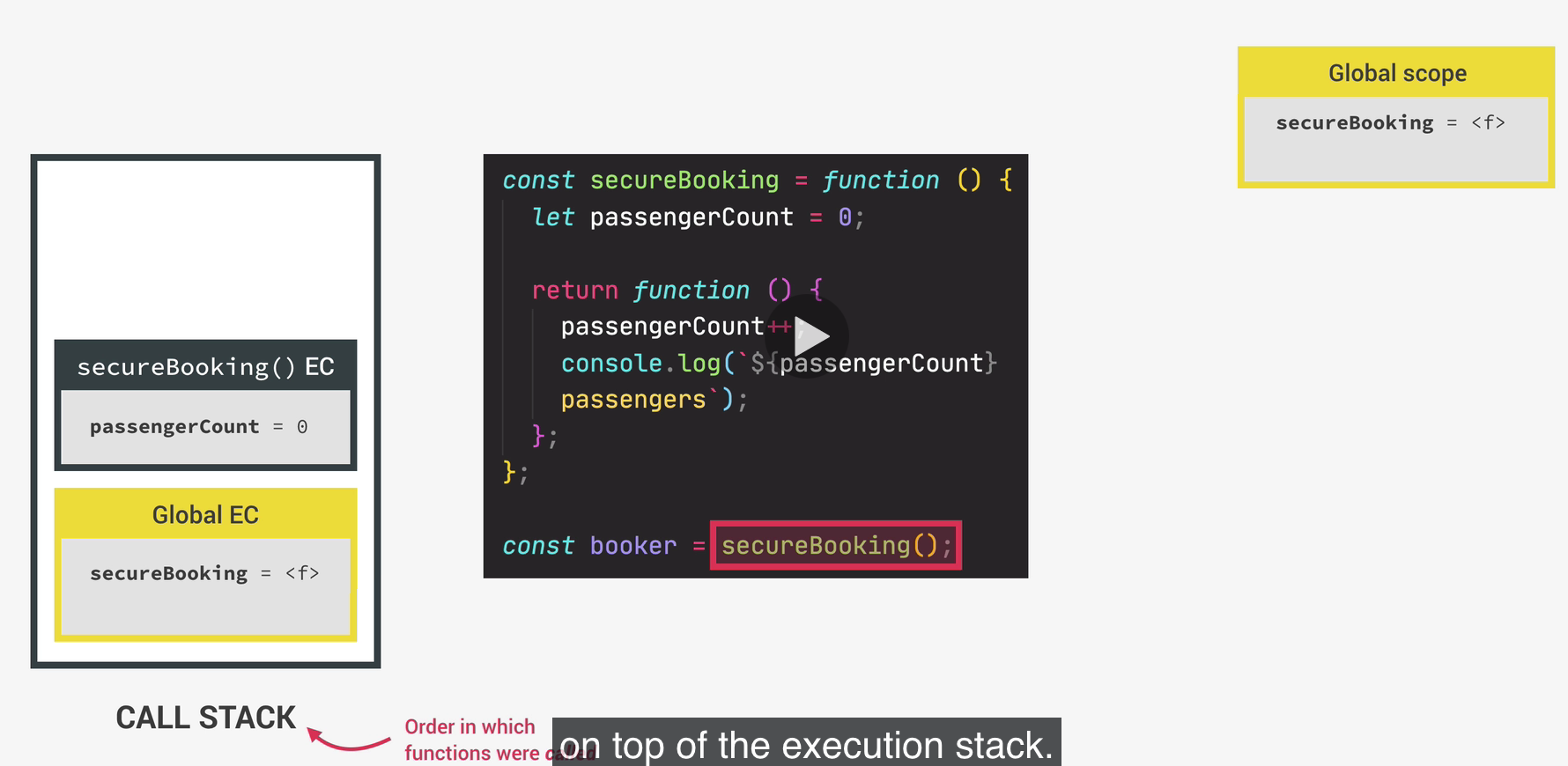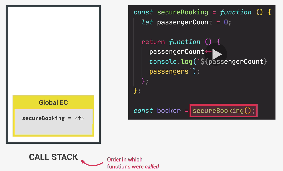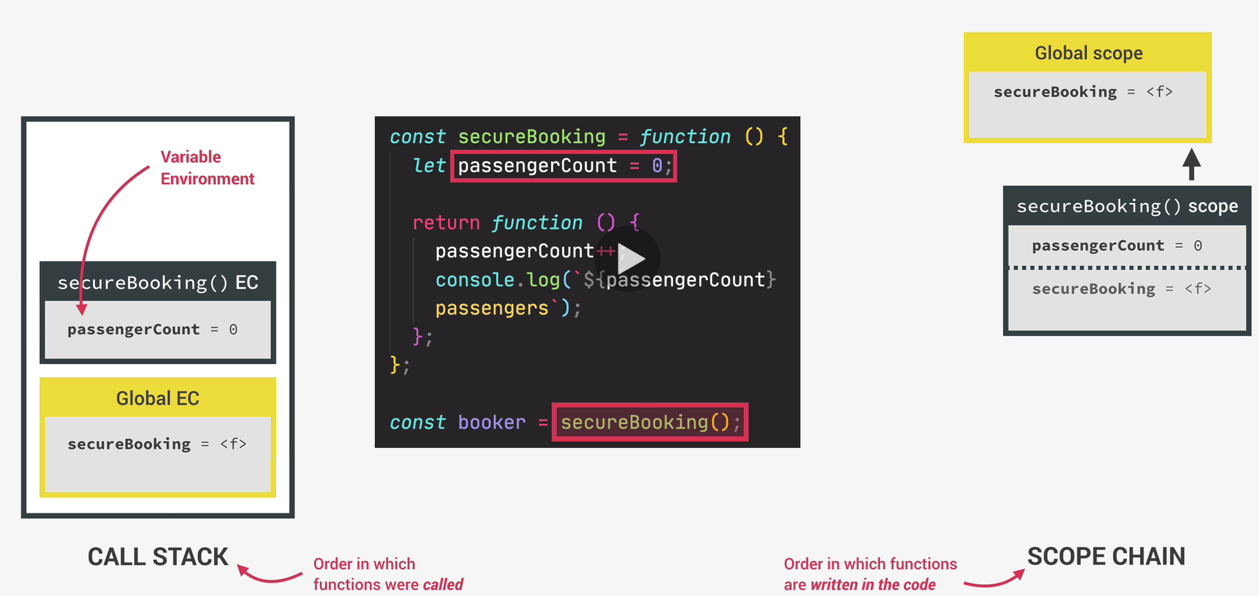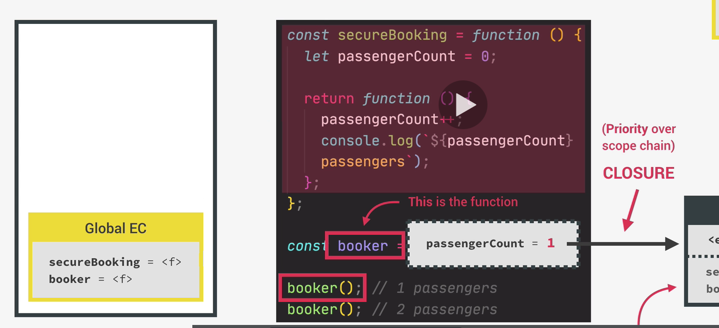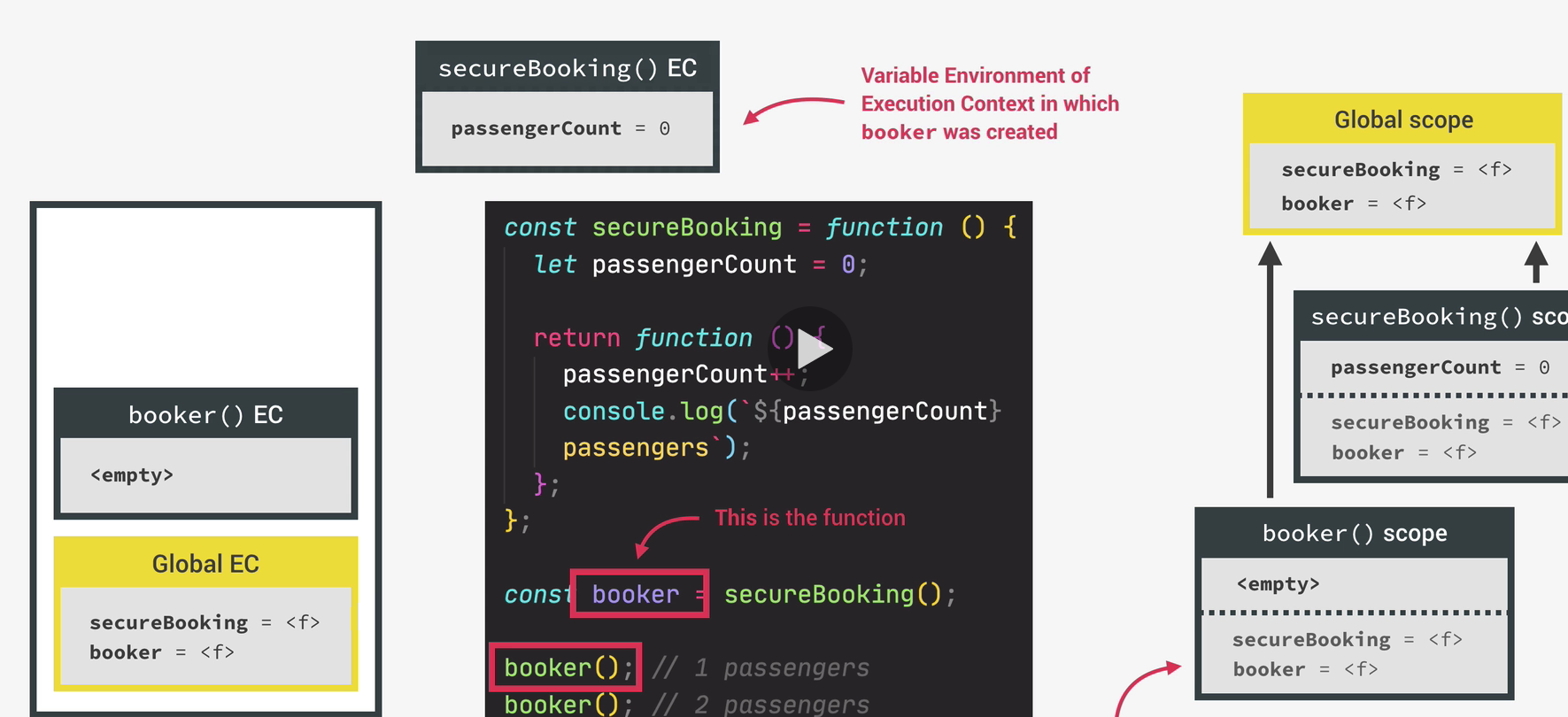 So, therefore the Booker function will get access to this variable environment, which contains the passengerCount variable.