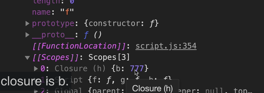 So in a sense, the scope chain is actually preserved through the closure, even when a scope has already been destroyed