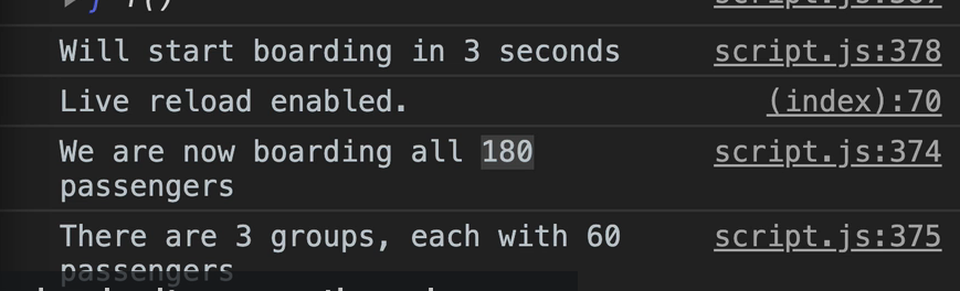 And so now this function executes, increasing the passengerCount to 2 and logging a message again.