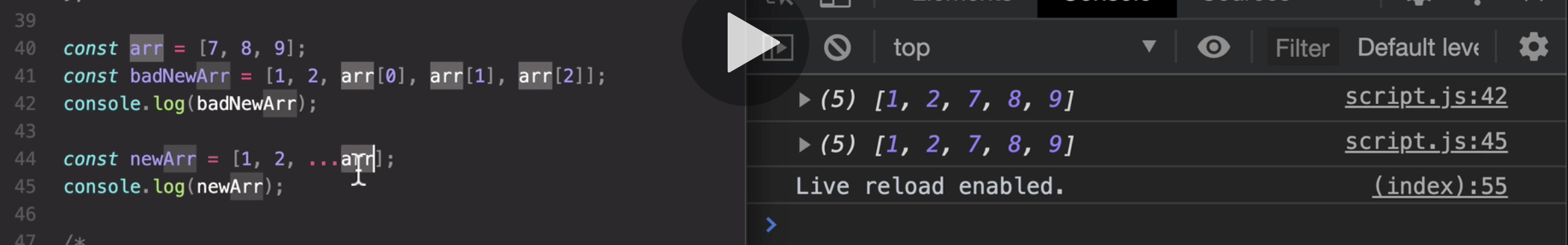So what the spread operator does is to basically take all the values out of this arr. array, and then write them individually**