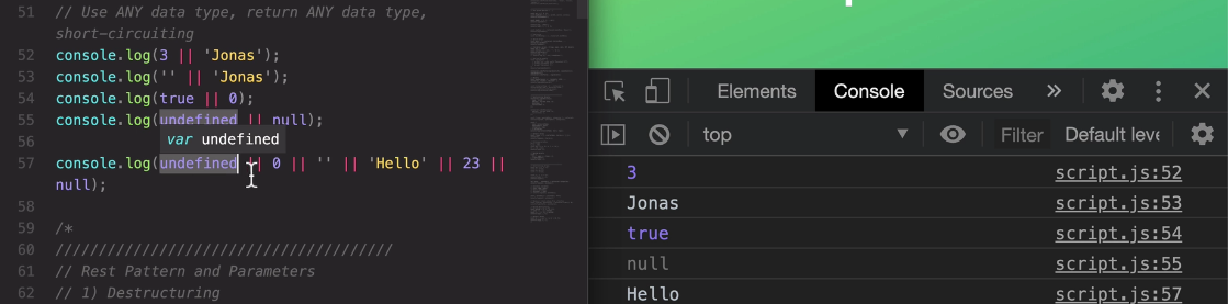 it will immediately return that first value. So that's exactly what we see here with the three which is a truthy value.