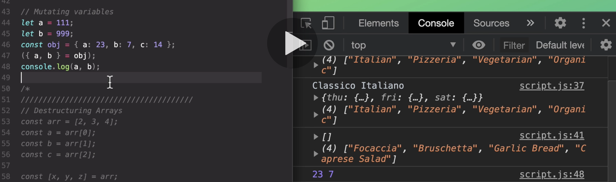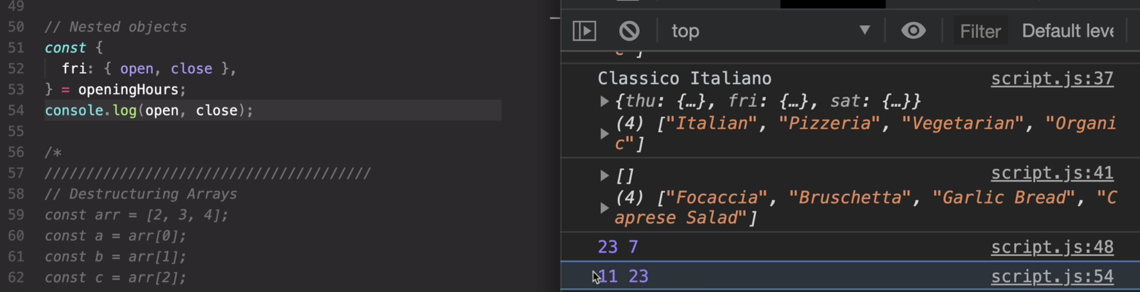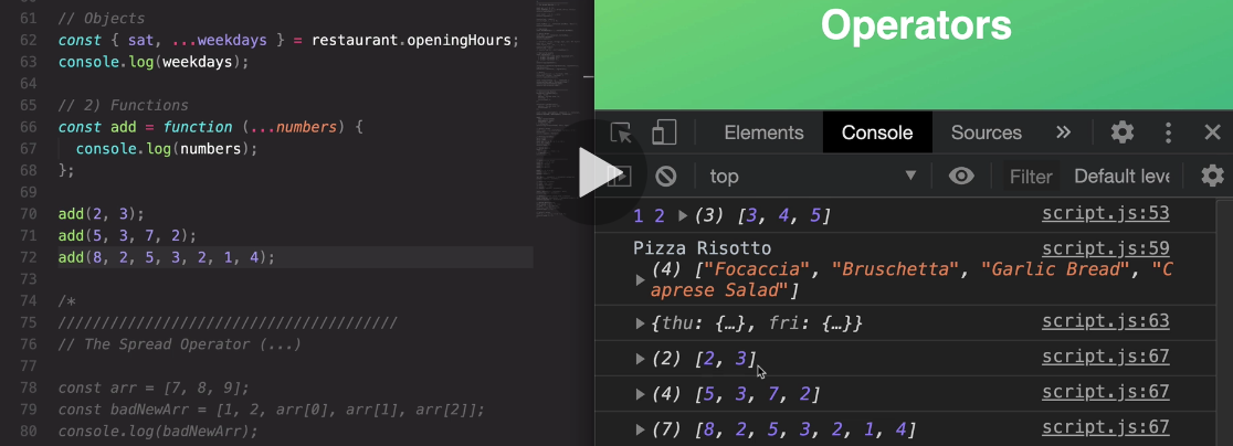 and so now once again, as I said in the beginning the rest syntax is taking multiple numbers or multiple values and then packs them all into one array.