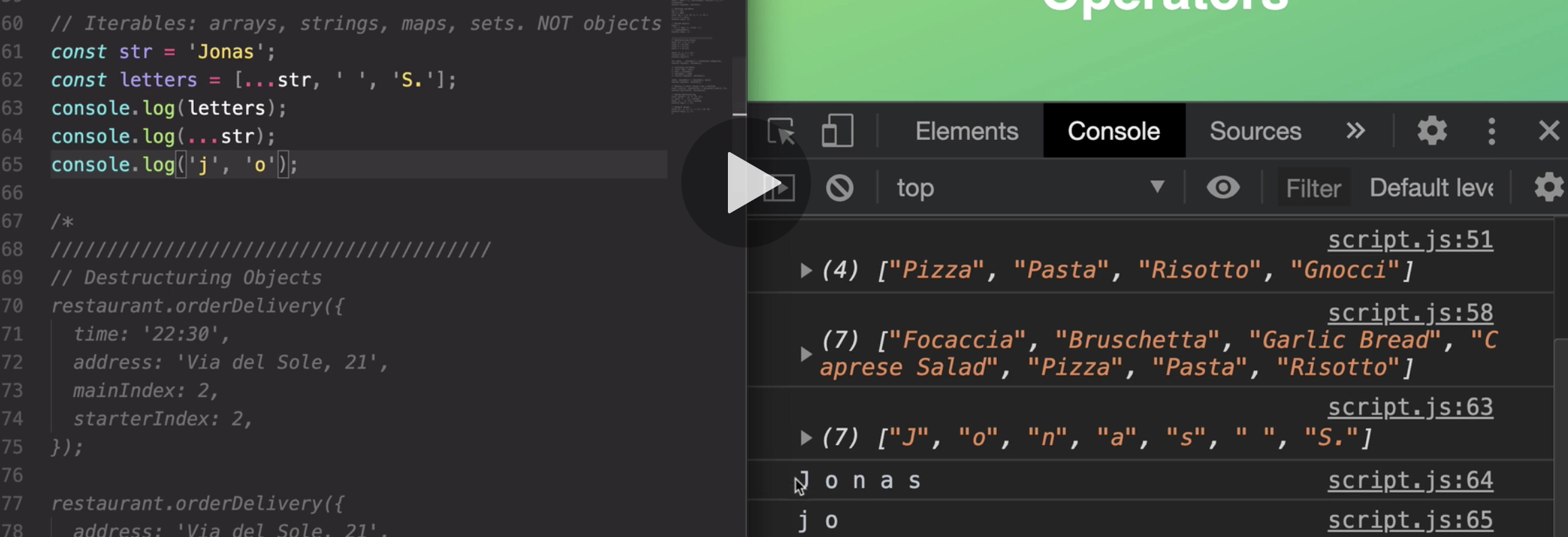 but for now, just know that iterables are things like all arrays, strings, maps, or sets, but not objects.'
