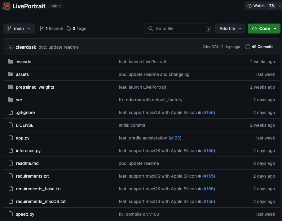 허깅페이스에서 가장 트렌딩한 순위를 볼 수 있는데, Live Portrait이 있다.