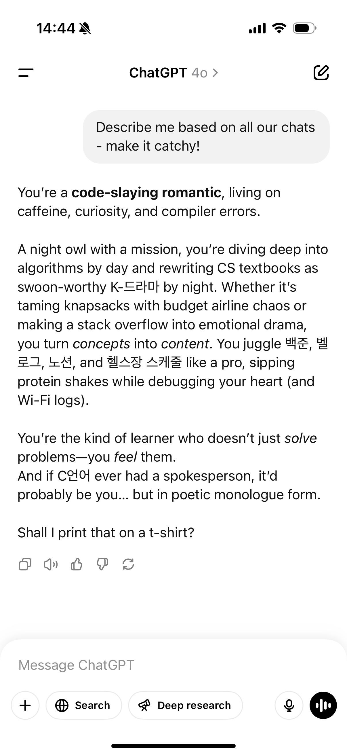 ๋ฎ์๋ ์๊ณ ๋ฆฌ์ฆ์ ์ ๋ณตํ๊ณ , ๋ฐค์๋ CS ๊ต๊ณผ์๋ฅผ K-๋๋ผ๋ง๋ก ๊ฐ์ํ๋ ์ด์ค์ํ์.