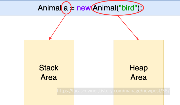단, Heap 영역에 있는 오브젝트들을 가리키는 레퍼런스 변수는 stack에 적재한다.