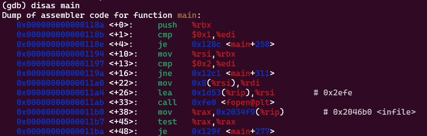 (사진에서는 main함수를 disassemble한 것입니다.)