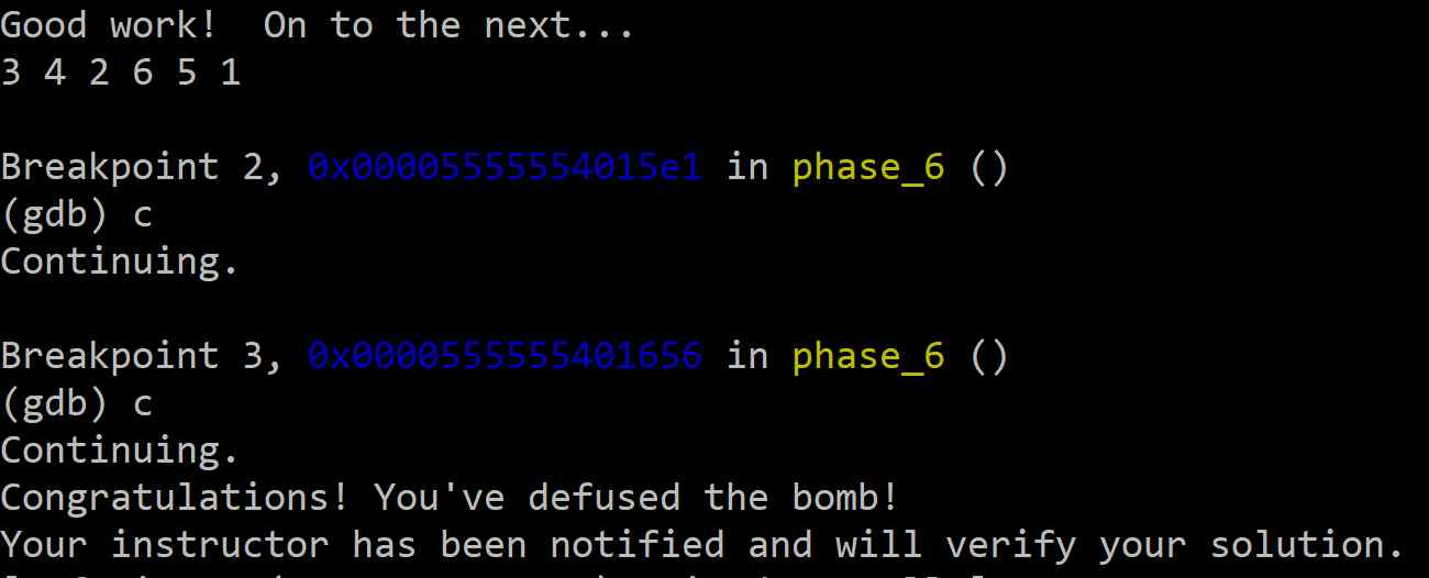 Phase 6의 핵심은 사용자가 입력한 순서에 따라 미리 정의된 연결 리스트의 순서를 재배열하고, 재배열된 리스트가 특정 조건(내림차순 정렬)을 만족하는지 검사하는 과정을 역추적하는 것이다.