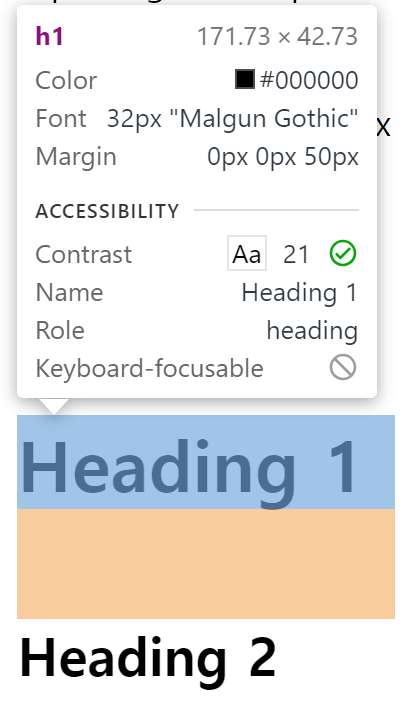 heading2의 마진값은 20px이지만 적용이 안된 부분을 볼 수 있다.글자를 감싸는 패딩~
