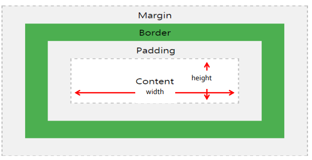 박스 모델이 차지하는 공간은 마진 + 보더 + 패딩 + 콘텐츠(width,height)+ 마진 + 보더 + 패딩px값의 합이다.