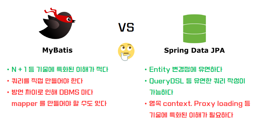 • "차라리 현업에서 많이 쓰이고 쿼리만 잘 짜면 되는 MyBatis 가 낫지 않을까?"