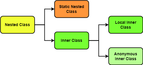 1. 클래스 안의 클래스Java 에도 클래스 안에 클래스가 들어갈 수 있다. 이러한 클래스를 "Nested Class" 라 부른다. Nested Class 선언 방식에 따라 Static Nested Class, Inner Class 로 나눌 수 있다. Inner Class 는 말 그대로 클래스 속에 정의된 클래스이고, Static Nested Class 는 이를 정적으로 정의한 클래스이다.