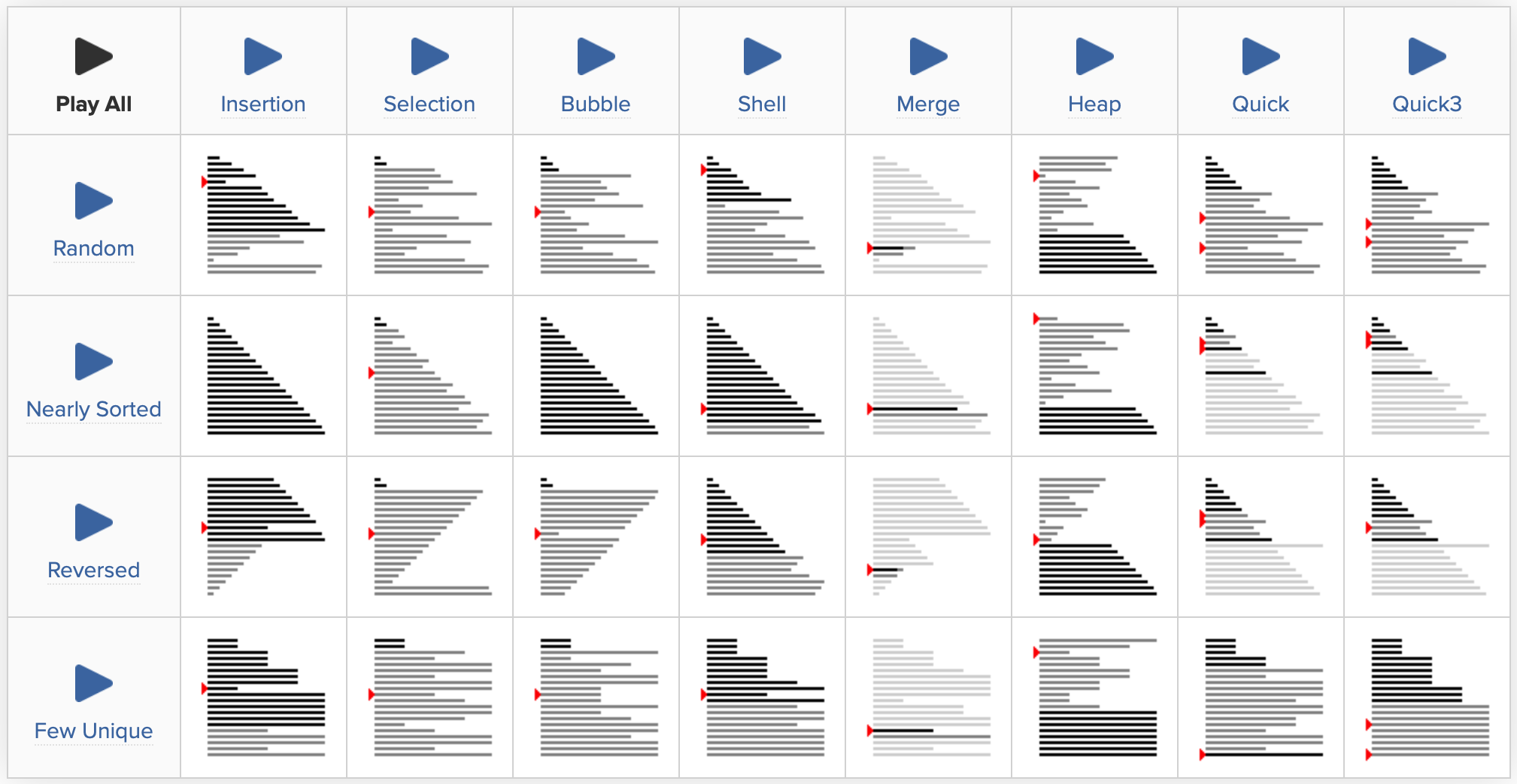 👉 다양한 상황에서의 정렬 알고리즘의 퍼포먼스 확인하기