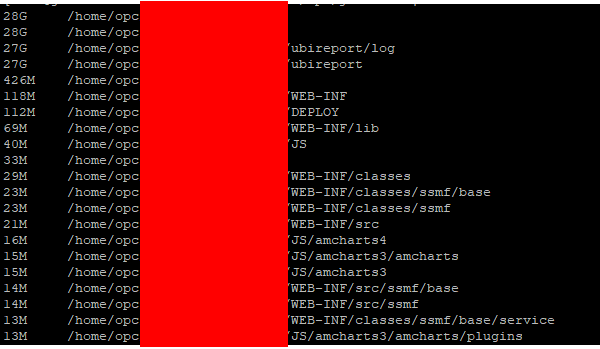 다음과 같이 나온다. 서버에서 쌓이고 있는 로그 폴더를 찾을 때 유용하다.