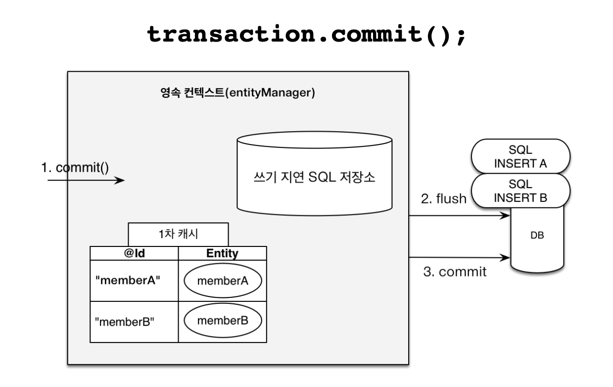 //커밋하는 순간 데이터베이스에 INSERT SQL을 보낸다.