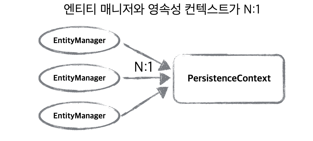 엔티티 매니저와 영속성 컨텍스트가 N:1
