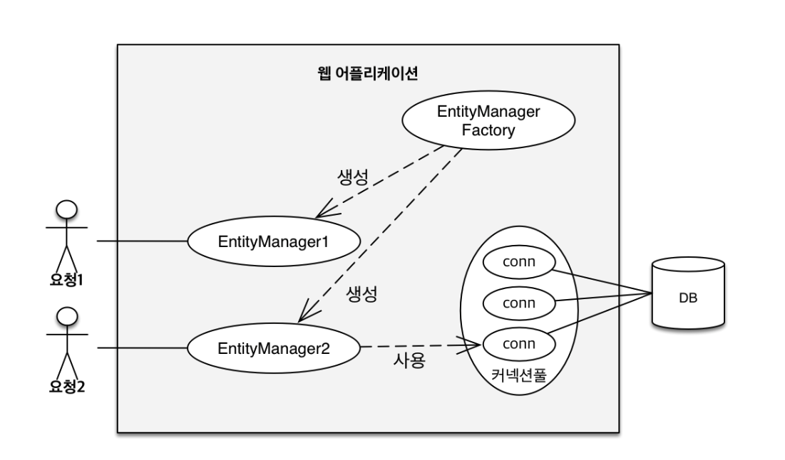 • 엔티티 매니저 팩토리는 하나만 생성해서 애플리케이션 전체에