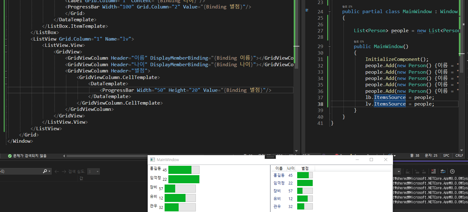 <TextBlock Grid.Column="0" Text="{Binding 이름}"/>