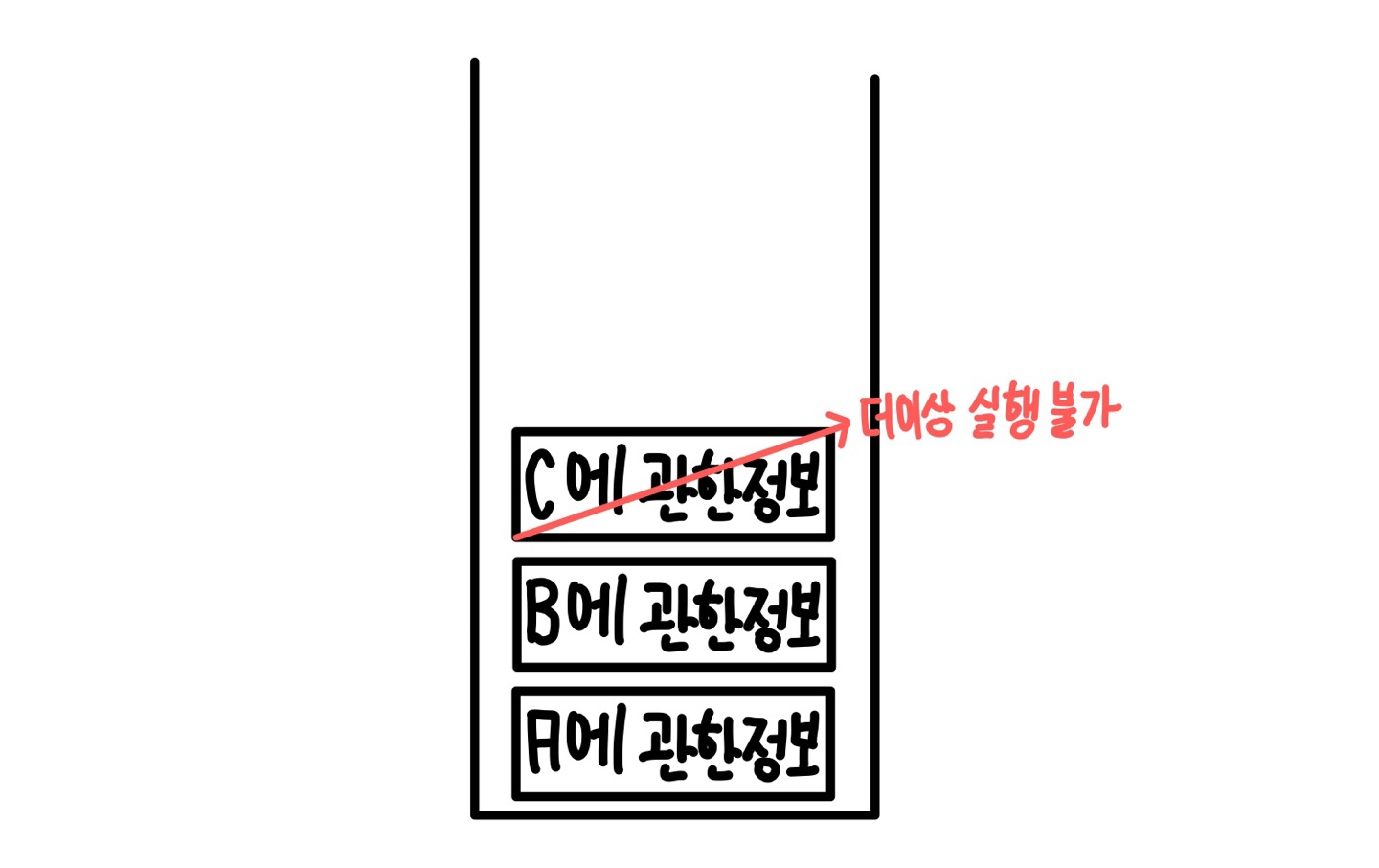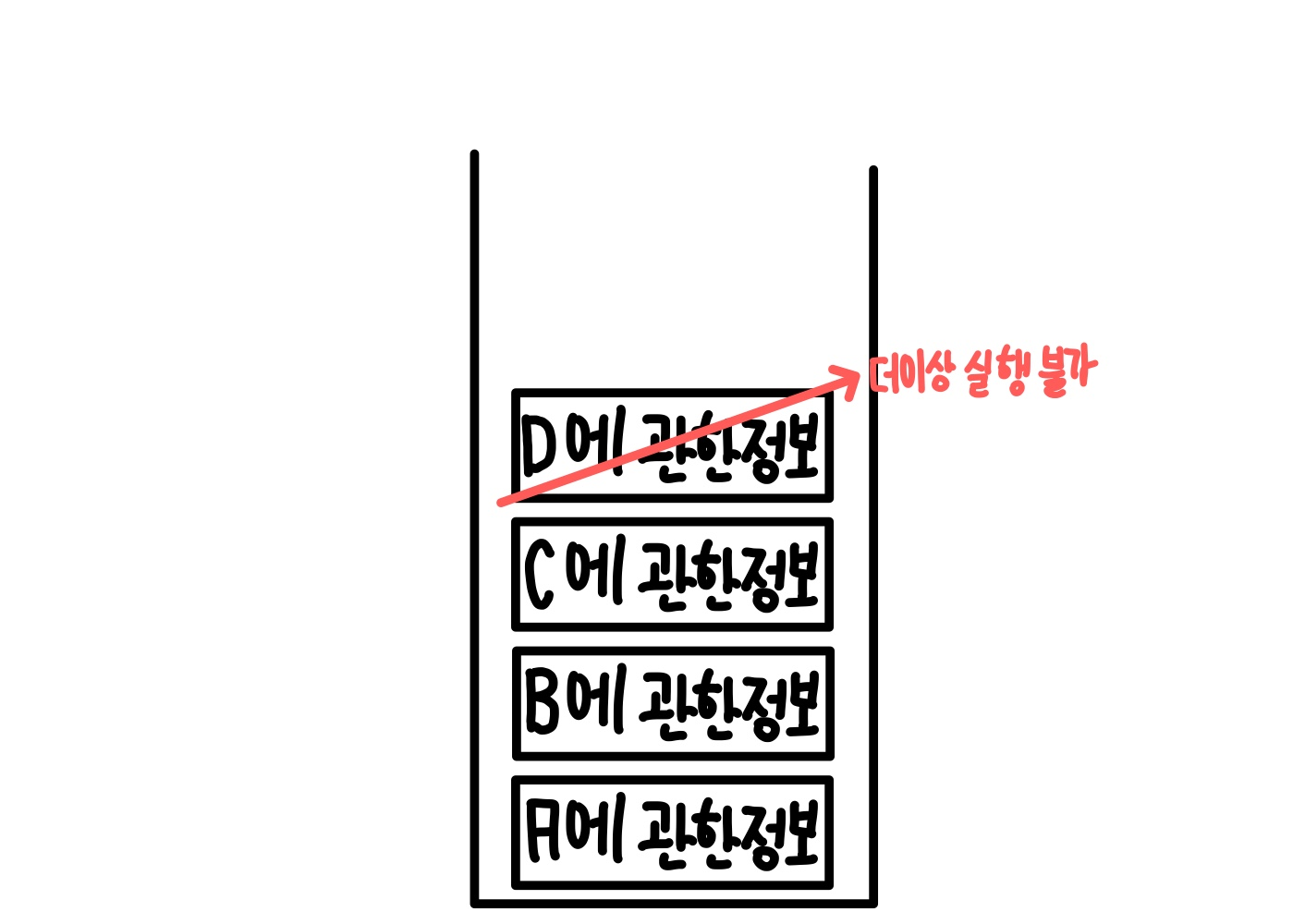 그리고 스택 형식으로 저장된 데이터중 가장 마지막으로 들어온 데이터를 실행한다.