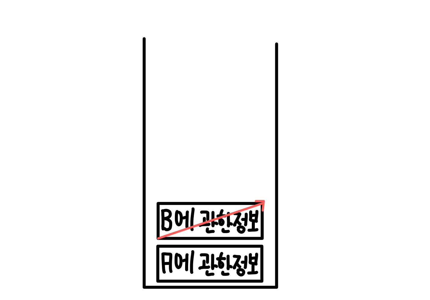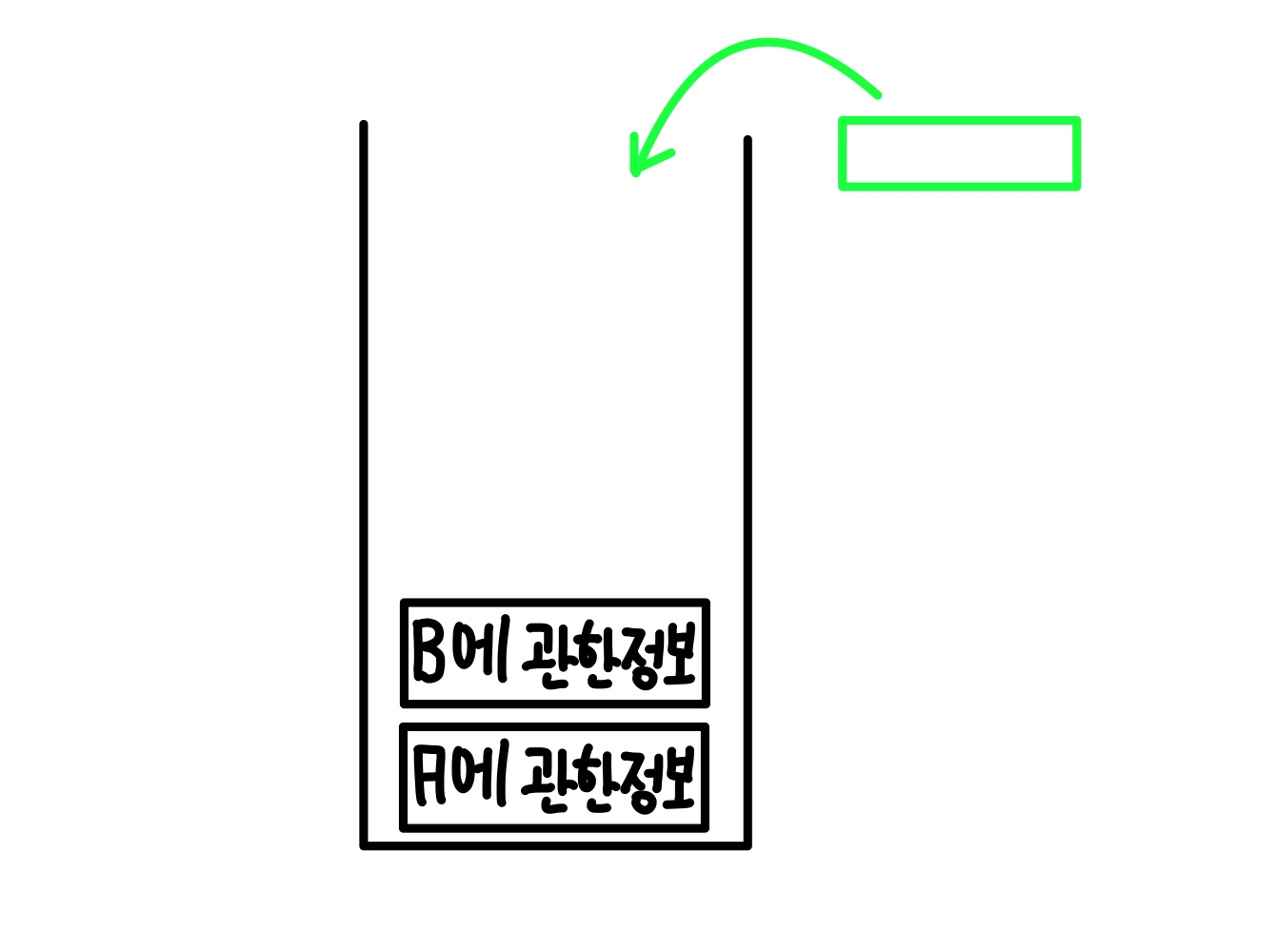 그 후 A에서 처음으로 들어가는 재귀부분인 B에 관한 정보가 저장된다.
