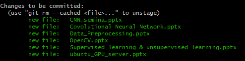git add. 를 했다면 git status 명령어로 현재 디렉토리 상태를 확인합니다.