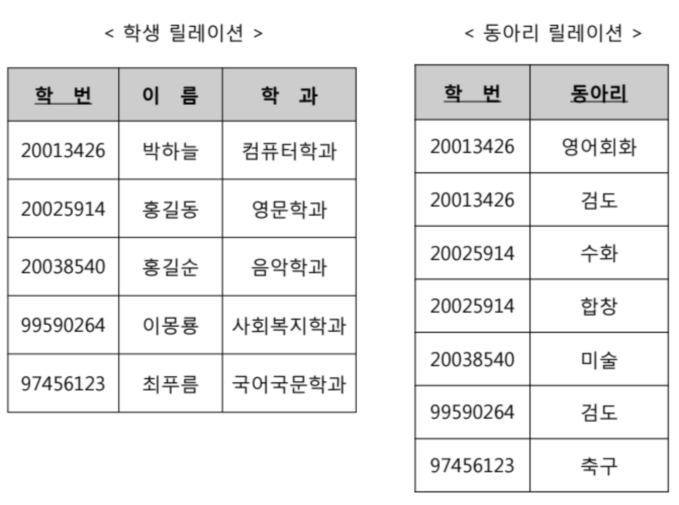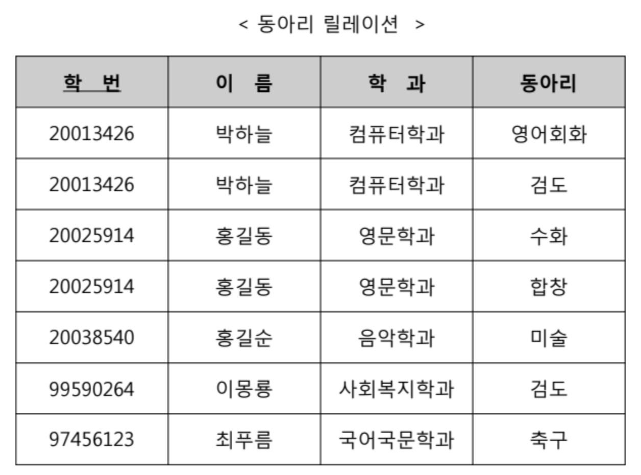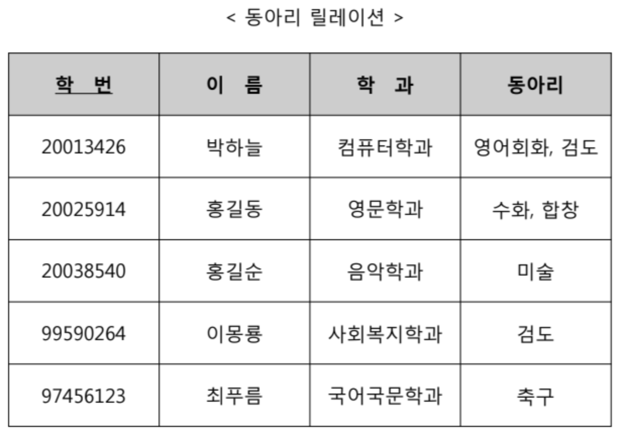 → 예를 들어 위와 같은 테이블이 있다면 동아리에 2개의 값이 있다.