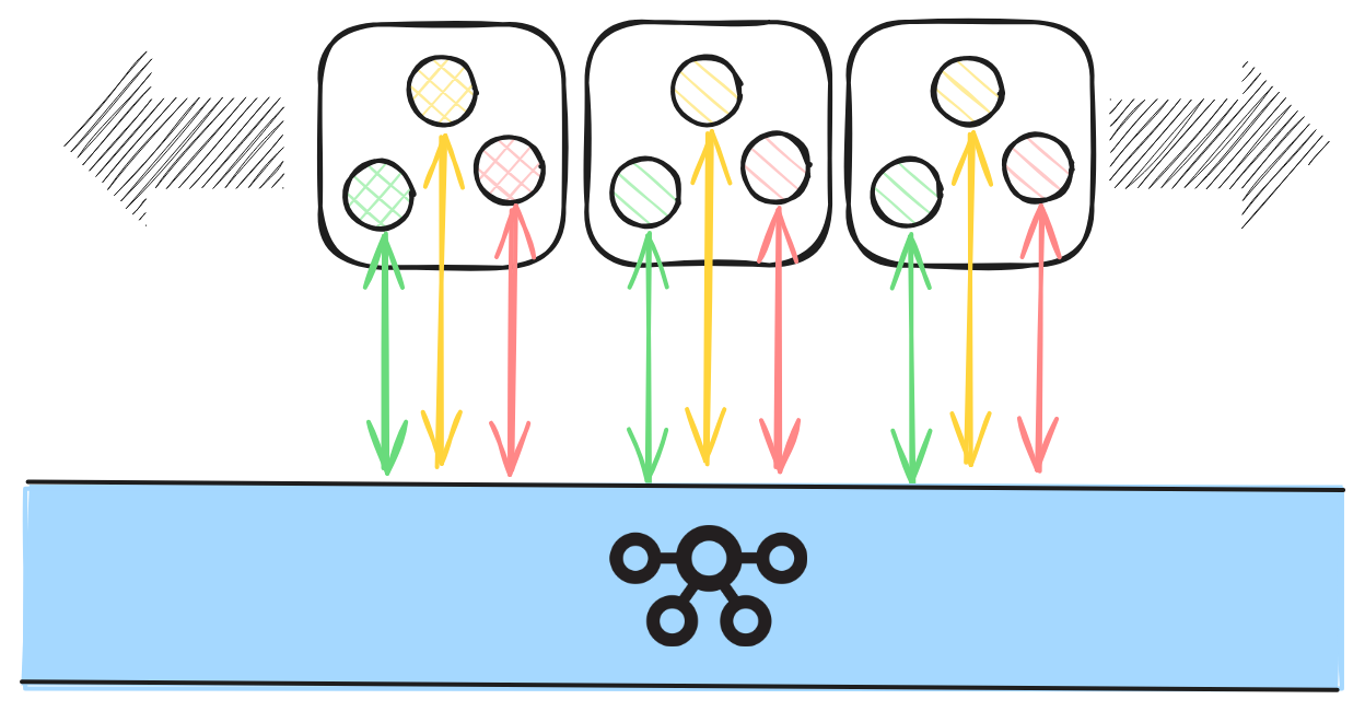 그래서 우리 팀은 초기 개발 속도가 빠른 전통적인 모놀리식 아키텍처의 장점과, 분산 처리와 스케일링이 자유로운 EDA의 장점을 결합한 이벤트 기반 모놀리식 아키텍처를 구상했습니다.