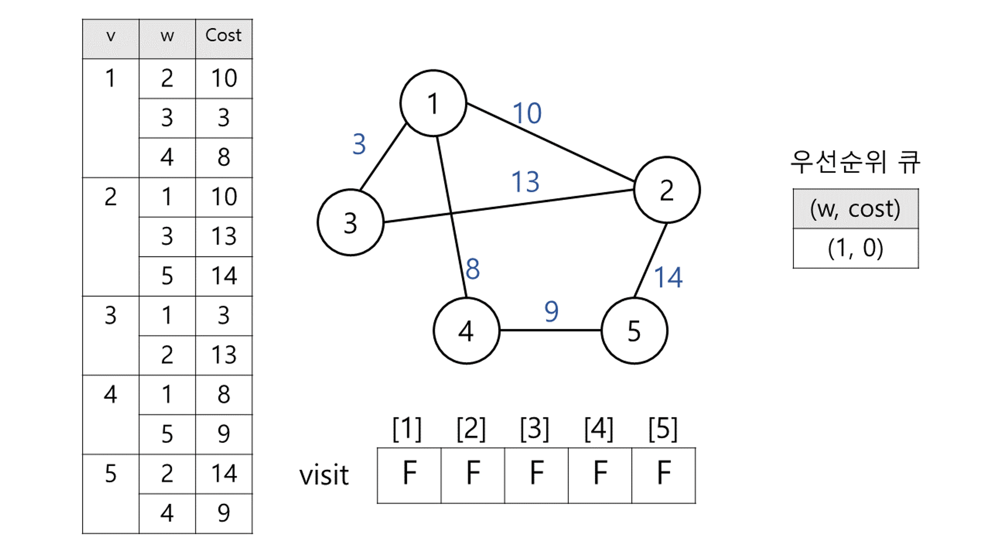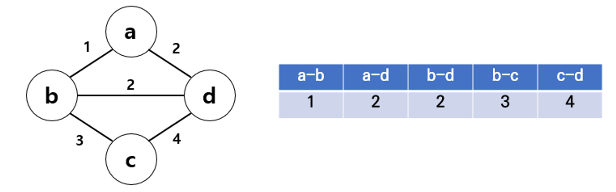 - 여러 개의 네트워크 지점들이 있는데, 모든 지점들을 유선으로 연결하면서 연결선의 총 길이가 최소가 되어야 하는 문제