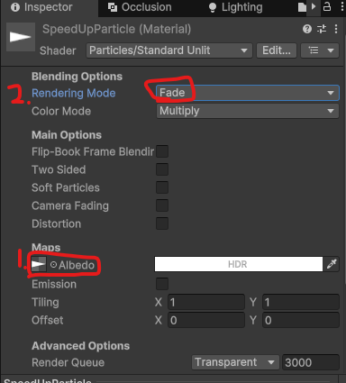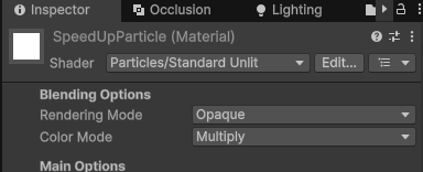새로운 메테리얼을 만들고, 셰이더를 파티클/스탠다드 언릿으로 변경.