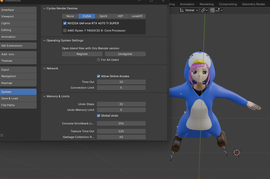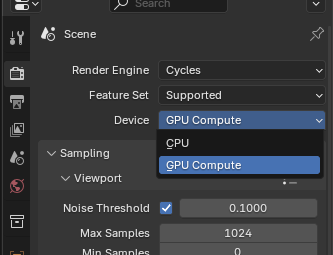 프로젝트 설정에서 쿠다를 사용한 렌더링 설정을 간편하게 할 수 있다.