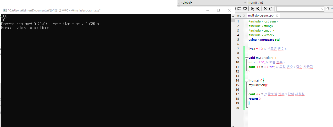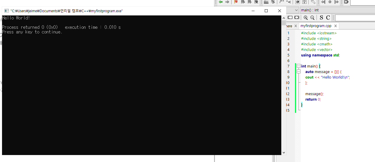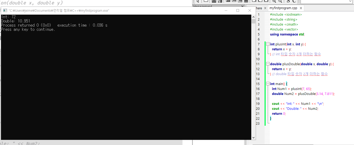 C++에는 기본적으로 main() (코드실행에 쓰임) 등의 함수가 내장되어 있지만,