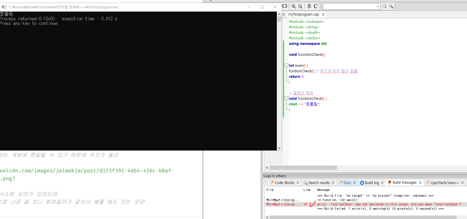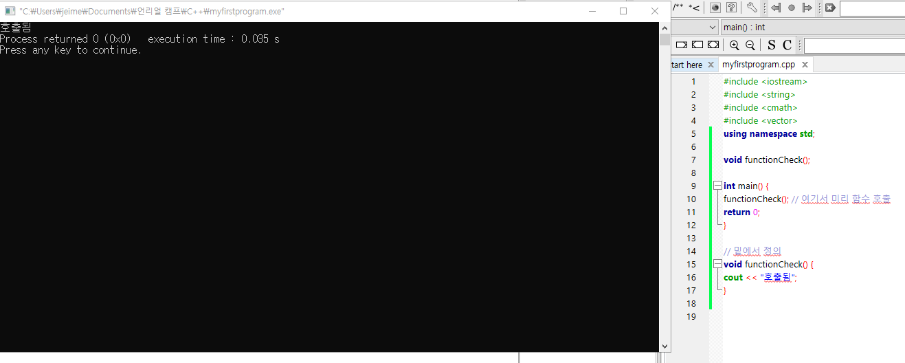 functionCheck(); // 여기서 미리 함수 호출