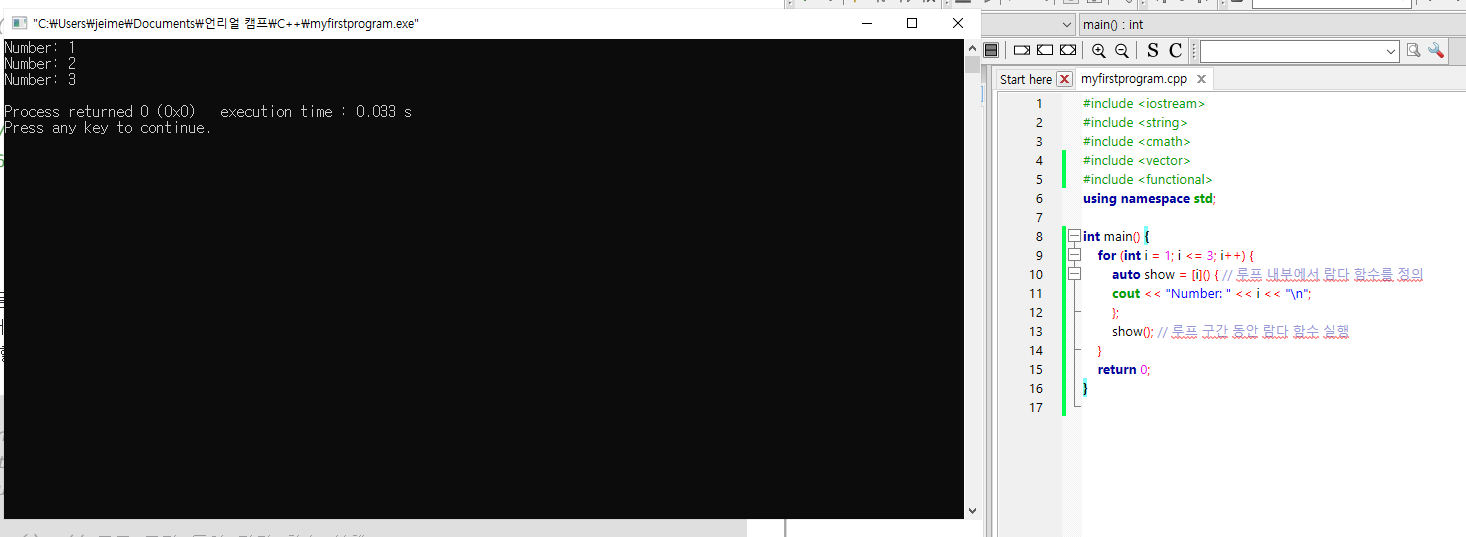 show(); // 루프 구간 동안 람다 함수 실행