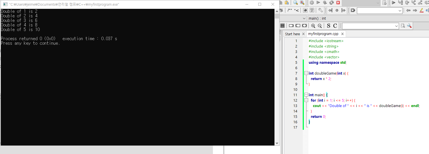 cout << "Double of " << i << " is " << doubleGame(i) << endl;