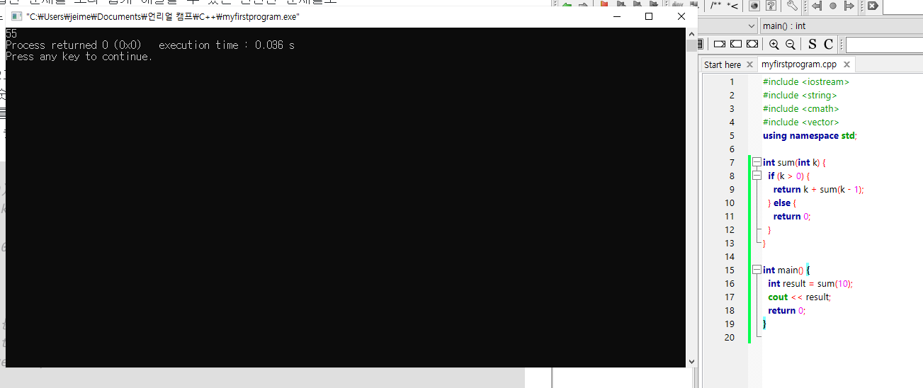 return k + sum(k - 1); // 인수 + 이전 함수 결과