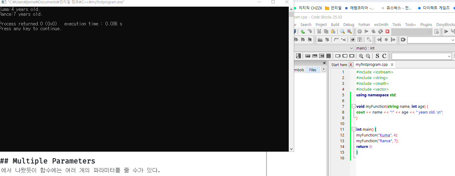 위에서 나왔듯이 함수에는 여러 개의 파라미터를 줄 수가 있다.