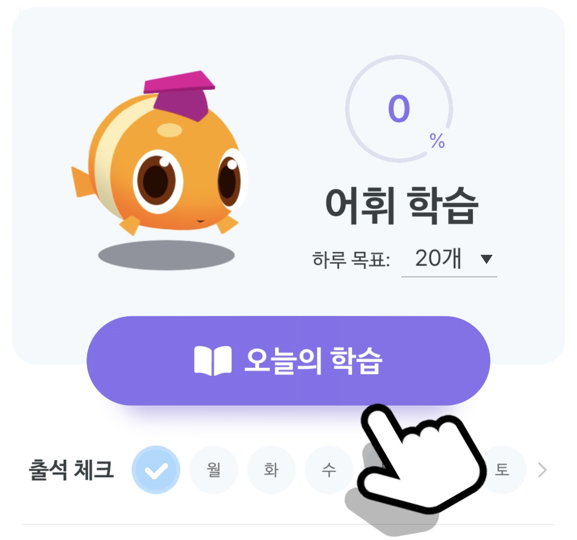 신규 진입시 앱의 주요 컨텐츠인 오늘의 학습으로 유도