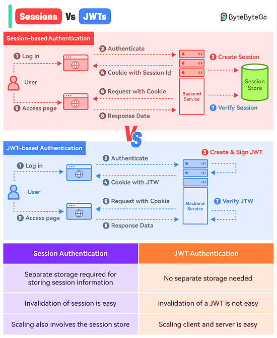 ByteByteGo Ep112: What is a deadlock?의 세션 기반 인증과 JWT 기반 인증에 대한 부분을 읽고 내용을 정리하였습니다.