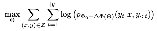 기존에는 아래와 같은 수식을 사용하여 업데이트했는데, 이 수식은 업데이트가 사전 학습에도 적용되고, fine-tunning 시에도 전체 파라미터 모두를 업데이트 한다.