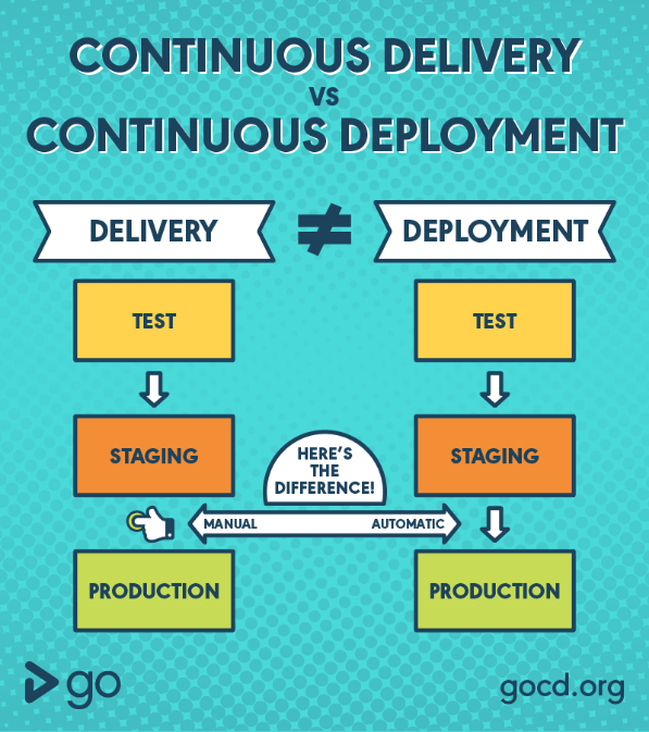 빌드 및 테스트가 완료된 후, 자동으로 스테이징 환경에 배포되도록 설정하고 마지막 테스트를 수행한 뒤, 프로덕션에 배포할지 결정한다.