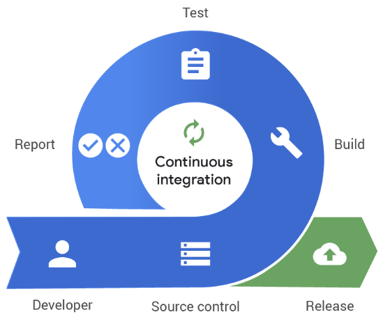 지속적 통합(continuous integration, CI)은 지속적으로 품질 관리(Quality Control)를 적용하는 프로세스를 실행하는 것이다. - 작은 단위의 작업, 빈번한 적용. 지속적인 통합은 모든 개발을 완료한 뒤에 품질 관리를 적용하는 고전적인 방법을 대체하는 방법으로서 소프트웨어의 질적 향상과 소프트웨어를 배포하는데 걸리는 시간을 줄이는데 초점이 맞추어져 있다. 대표적인 CI 툴에는 젠킨스(Jenkins)가 있다.