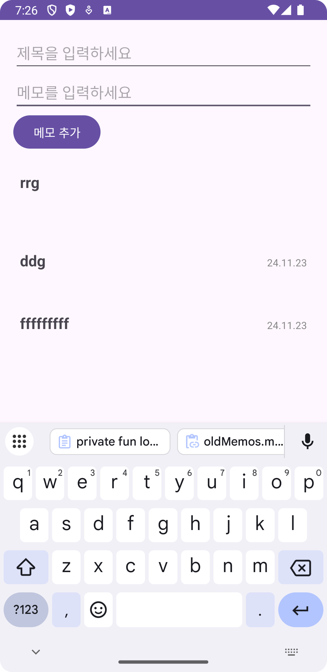 Memo데이터 클래스 수정날짜를 추가하기 위해 데이터 클래스에 date 필드를 추가합니다.