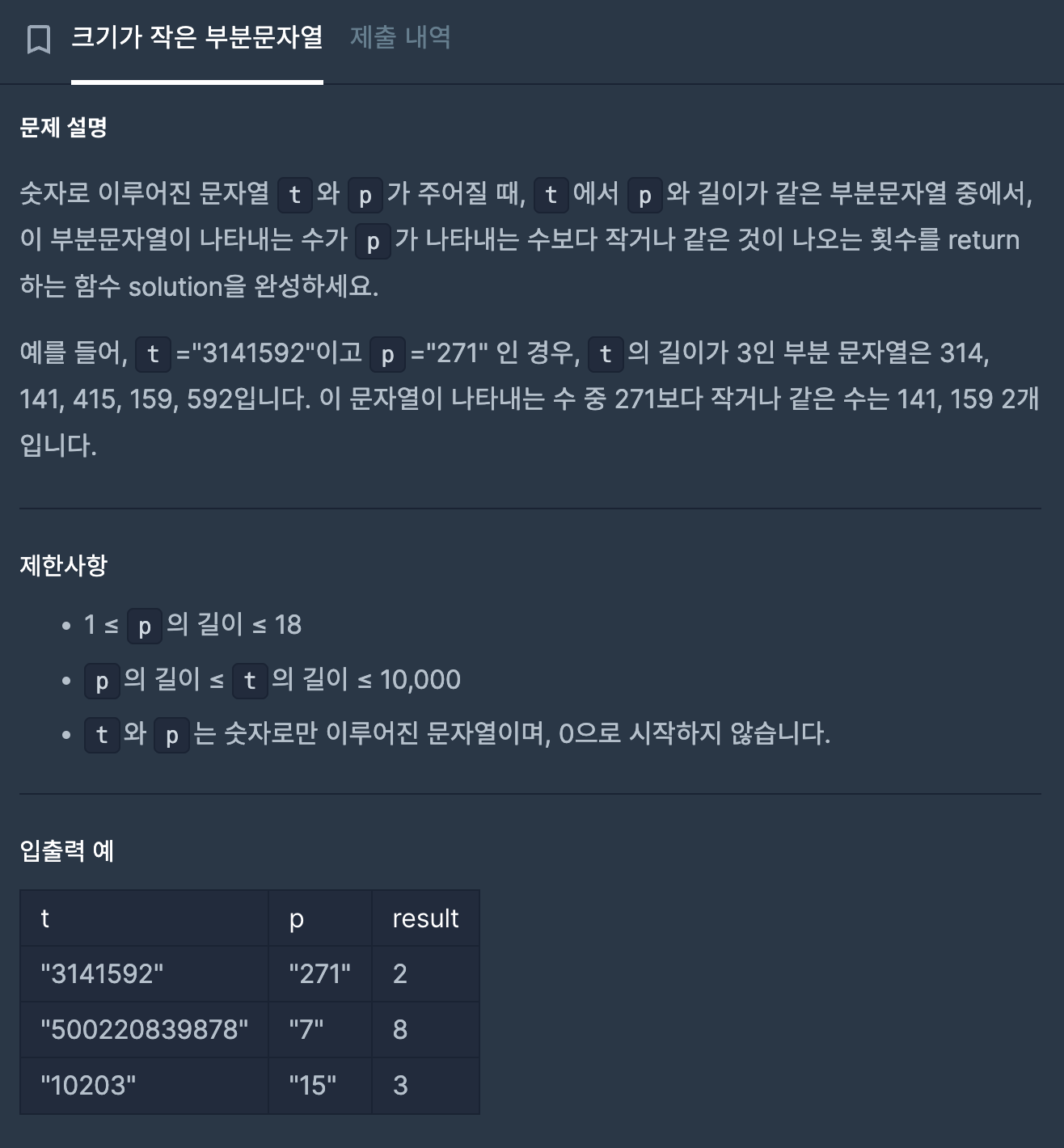 이후 long[i:i+pat]을 사용해 부분 문자열을 나타내 주었고 short보다 작거나 같을 시에 answer에 +1을 해주었습니다.
