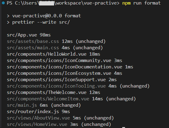 npm install후 npm run format명령어를 입력하면 기본 폴더구조가 생성됩니다