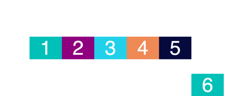 또 위의 그림과 같이 6개의 아이템들이 있다고 가정했을 때 한 가지 아이템만 따로 위치시키는 방법도 있다. align-self property를 이용하면 된다.
