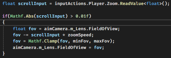 virtualCamera의 FOV값을 스크롤에 따라서 변경되게 해준다.